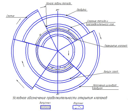 Рис. 2 Круговая диаграмма газораспределения многоцилиндрового вспомогательного двигателя