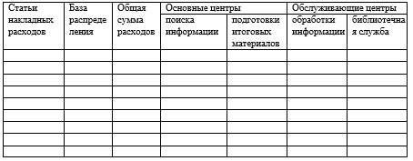 Эта компания специализируется на поиске информации и представлении ее по требованию заказчику. В компании два основных подразделения (центры затрат): отделение поиска информации и отделение подготовки итоговых материалов. Вспомогательные службы (центры затрат) представлены отделом обработки информации и библиотечной службой.