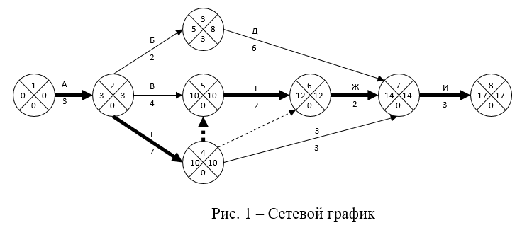 Построим сетевой график с обозначениями событий и работ.