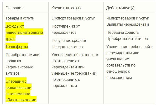 Правила отражения операций в платежном балансе