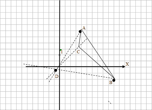 Даны две вершины A(2, 3), B(5, –1) и точка D(–5/7, –1/7) пересечения высот треугольника. Составить уравнения его сторон. Сделать чертеж
