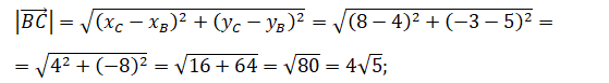 Даны координаты вершин треугольника ABC:A(-4;-1),B(4;5),C(8;-3). Требуется: 1) вычислить длину стороны BC; 2) составить уравнение стороны BC; 3) найти внутренний угол треугольника при вершине.