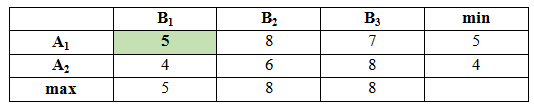 Проверим наличие седловой точки в данной матрице.
