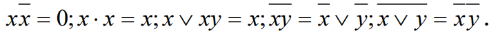 Для выражения z(z ∨ y) ∨ xz , пользуясь правилами де Моргана, получить ДНФ и упростить её z(z ∨ y) ∨ xz = (zz ∨ zy) ∨ xz = zy ∨ xz = zy ⋅ xz = (z ∨ y)(x ∨ z) = zx ∨ z ∨ yx ∨ yz = z ∨ yx Использовали xx = 0; x ⋅ x = x; x ∨ xy = x; xy = x ∨ y; x ∨ y = x y