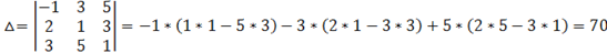 a1 = (-1; 2; 3), a2 = (5; 3; 1), a = (-13; -6; 5)