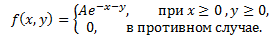 Двумерная случайная величина (икс,игрек) задана совместной плотностью распределения: ф от икс игрек равно системе ае в степени минусикс минус игрек и 0. Найти: коэффициент А, ф икс игрек от икс игрек, ф икс от икс, ф игрек от игрек.