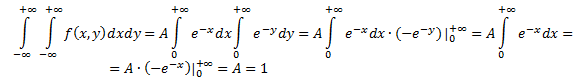 «Двумерная случайная величина (икс,игрек) задана совместной плотностью распределения: ф от икс игрек равно системе ае в степени минусикс минус игрек и 0. Найти: коэффициент А, ф икс игрек от икс игрек, ф икс от икс, ф игрек от игрек.»