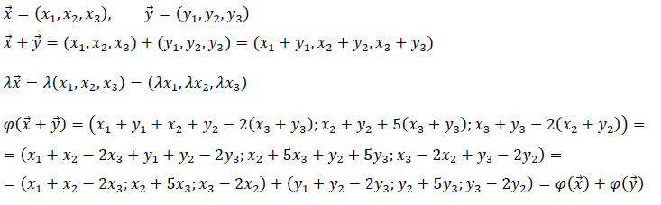 Являются ли след. преобразования векторного пространства р 3 линейными?Если преобразование линейное, то найти его матрицу в стандартном базисе.Пусть икс равно икс1,икс2, икс3.Лямбда икс равно икс1 плюс икс2 минус 2икс3; икс2 плюс 5икс3; икс3 минус 2икс2.