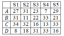 Коммерческий директор торговой организации желает открыть филиал в районном центре города. Ему дают «добро» в четырех районных центрах А, В, С и D. Затраты на строительство не определены и, в связи с позиций партнеров, зависят от того, какой будет спрос на предлагаемый товар в период строительства. Возможны 5 вариантов развития ситуации: S1, S2, S3, S4, S5. Матрица затрат имеет вид: