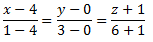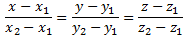 Уравнение прямой, проходящей через точки A (x1, y1, z1) и B (x2, y2, z2) имеет следующий вид: