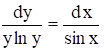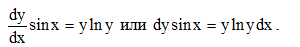 Разделяем переменные, для этого обе части уравнения делим на произведение sin x y ln y:
