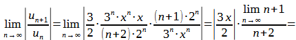 Интервал сходимости степенного ряда найдем с помощью признака Даламбера: