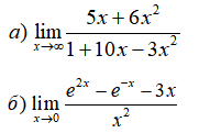 Найти пределы: предел пять икс плюс шесть икс в квадрате деленное один плюс десять икс минус три икс в квадрате б) предел е в степени два икс