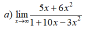 «Найти пределы: предел пять икс плюс шесть икс в квадрате деленное один плюс десять икс минус три икс в квадрате б) предел е в степени два икс»