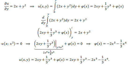 «Подберите функцию u(x,y), удовлетворяющую условиям: д у делить на д игрек равно два икс плюс игрек в квадрате; у 9икс игрек в квадрате) равно ноль»