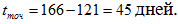 Определим длительности периодов начисления процентов путем вычитания порядковых номеров дат их окончания и начала