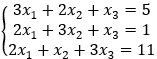 Решить систему линейных уравнений, используя формулы Крамера. Сделать проверку. три икс один плюс два икс два плюс икс три равно пять два икс один плюс три икс два плюс икс три равно один