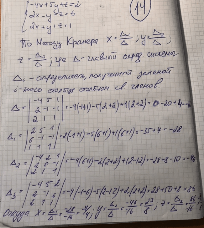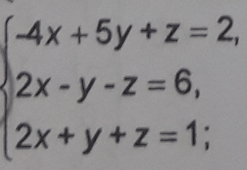 «Решить систему уравнений тремя способами а) по формулам Крамера; б) методом обратной матрицы; в) методом Гаусса. -4х+5у+z=2»