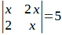 Решить уравнение: Решим квадратное уравнение. Дан определитель: икс, два икс, два, икс равно пяти. Составить уравнение и найти ответ.