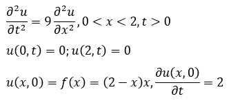 с граничными условиями u(0,t)=0; u(l,t)=0 и начальными условиями u(x,0)=f(x)=(L-x)x, ∂u(x,0)/∂t=ϕ(x).