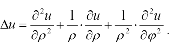 Решить задачу Дирихле в кольце: Δu=0,1<x<2 u(1,φ)=cosφ, u(2,φ)=sinφ. Введем полярную систему координат (ρ, φ): Оператор Лапласа в полярных координатах имеет вид: