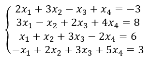Решить систему линейных алгебраических уравнений методом Гаусса или доказать, что система не имеет решений: