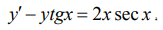 Решите дифференциальное уравнение: диф игрек минус угрек тангенс икс равно два икс секанс икс.