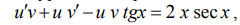 «Решите дифференциальное уравнение: диф игрек минус угрек тангенс икс равно два икс секанс икс.»