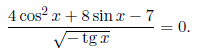 Решите уравнение: четыре косинус в квадрате икс плюс восемь синус икс минус семь деленное на корень квадратный из минус тангенс икс