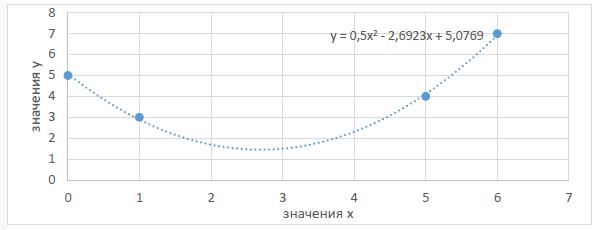 Для расчета применим квадратичную функцию для значений х и у: