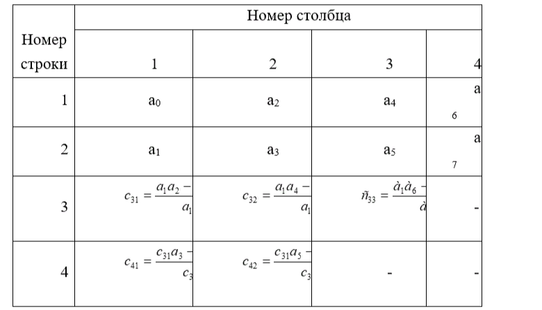В первую строку этой таблицы выписывают все элементы характеристического уравнения с четными индексами, во вторую все элементы с нечетными ин...