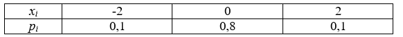 P(X -2) = Р(X = 0) + Р(X = 2) = 0,8+0,1=0,9 ,