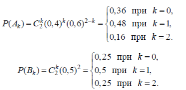 Вероятности событий Ak и Bk находим по формуле Бернулли. Имеем