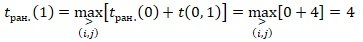 Затем рассматриваем событие 1, в которое входит только одна действительная работа (0, 1) продолжительностью 4 дня: