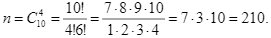 Общее число равновозможных исходов во всех случаях равно числу способов выбора 4 детали из 10, т.е.