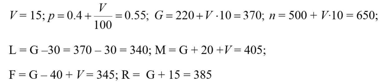 В каждом из n независимых испытаний событие А происходит с постоянной вероятностью р. Найти вероятность того, что событие А происходит: а) точно G раз; б) точно L раз; в) меньше, чем М и больше, чем F раз;