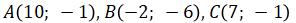 «В треугольнике с вершинами найти: 1) уравнение стороны AB; 2) уравнение высоты, проведенной из вершины B; 3) уравнение медианы, проведенной из вершины C; 4) уравнение прямой, проведенной из вершины A, параллельной стороне BC;»