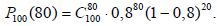 1) Вероятность того, что среди 100 отобранных деталей 80 деталей отличного качества можно определить и по формуле Бернулли: