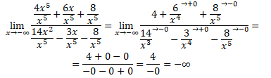 Чтобы раскрыть неопределенность, разделим числитель и знаменатель на х в наивысшей степени, то есть на х5: