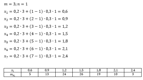 где, xi - результаты измерений, mxi - частоты, с которыми встречаются значения Значения xi рассчитываются по формуле