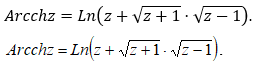Вычислите Arcch(2i). Используем известную формулу: Arcchz=Ln(z+√(z+1)·√(z-1)). В данном случае z = 2i . Найдем соответствующие корни, которые в данном случае понимаются в смысле главных значений: