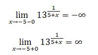 В точке x=-5 показатель функции не существует. Найдём пределы справа и слева в данной точке: