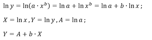 Предполагается, что подходящей функциональной аппроксимацией является степенная функция: .