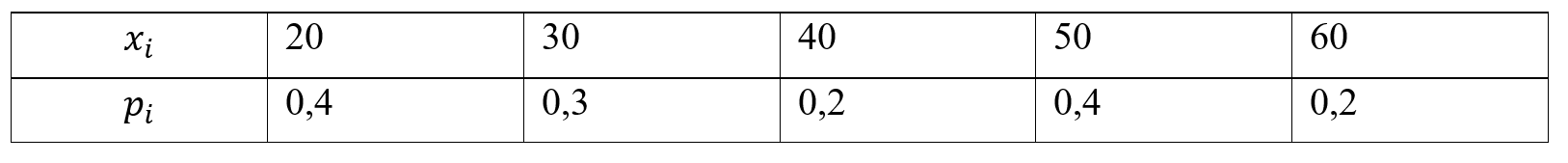 Закон распределения дискретной случайной величины X задан в виде таблицы. В первой строке ее указаны возможные значения x_i случайной величины X, во второй – их соответствующие вероятности p_i. Вычислить: