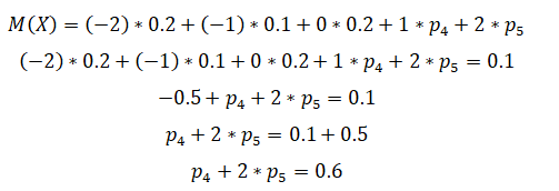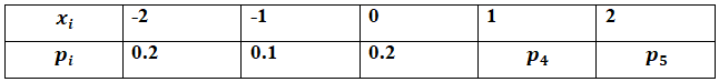 Закон распределения случайной величины X имеет вид, указанный в таблице. Найти вероятности p4,p5 и дисперсию, если математическое ожидание M(X)=0.1.